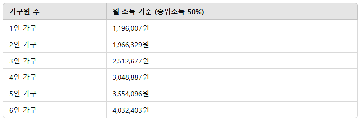 1인 가구 기준 54만 원, 4인 가구 기준 146만 원까지 받을 수 있습니다. 국민임대주택 및 공공임대주택 입주 우선권이 주어지며, 월세 및 전세금 지원도 가능합니다.